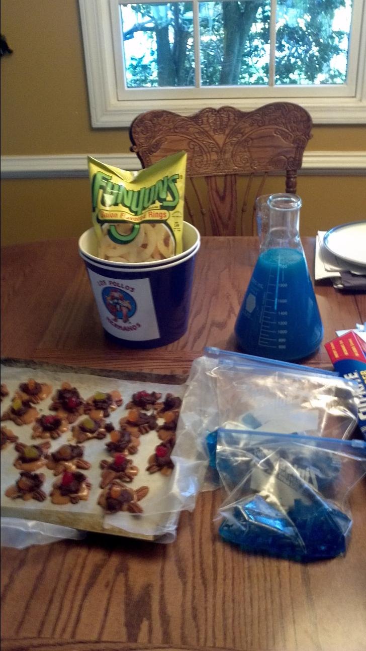 You also have a couple sandwich bags of "product" (Berry Blue jello jigglers) and a flask of Walt's magic (Blue margaritas) waiting by: