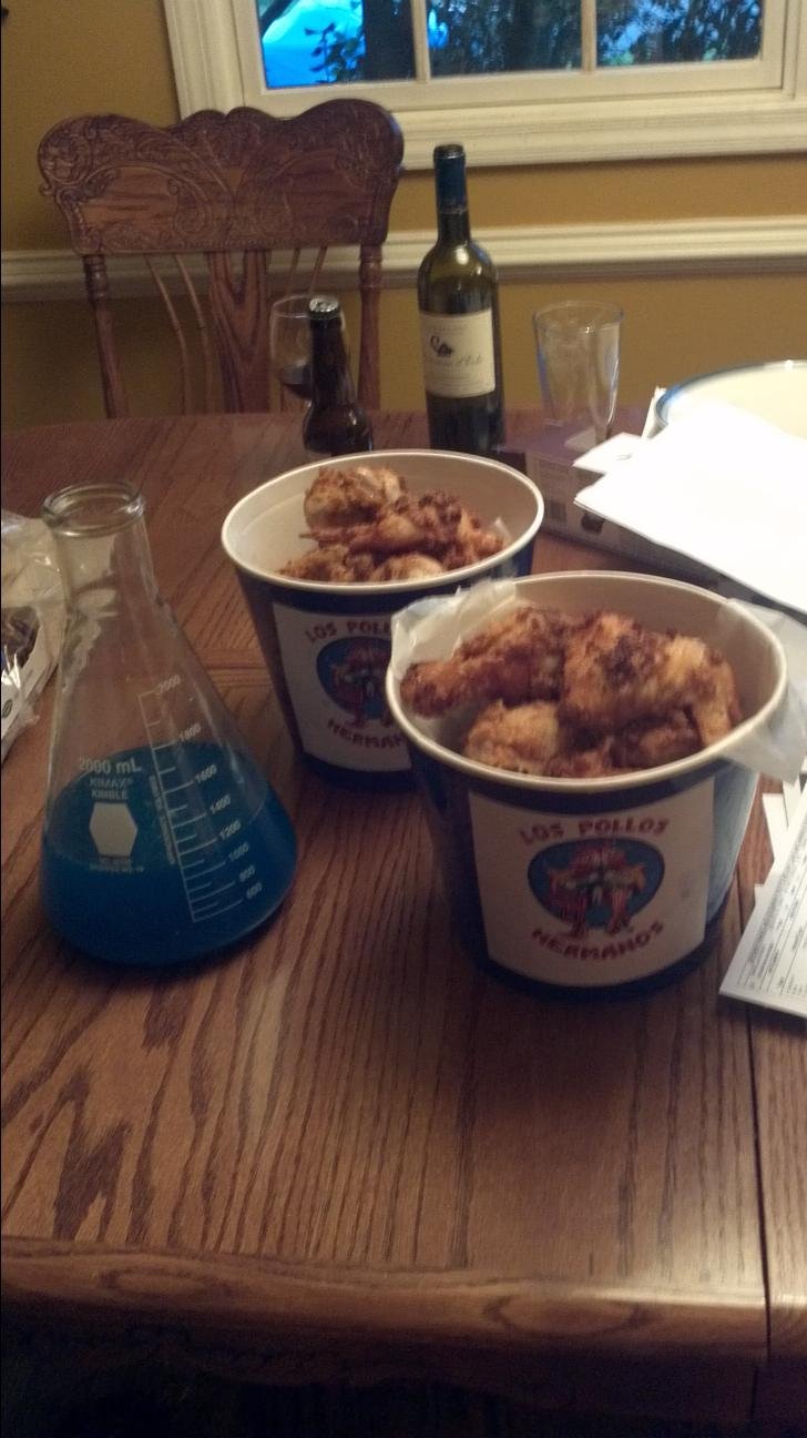 Yummy Los Pollos Hermanos dinner (use your favorite fried chicken recipe)