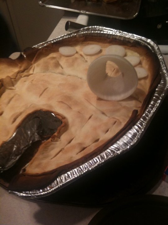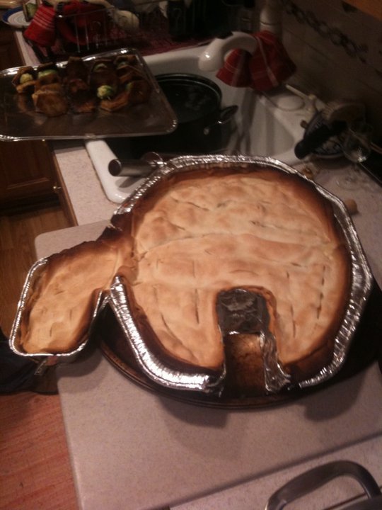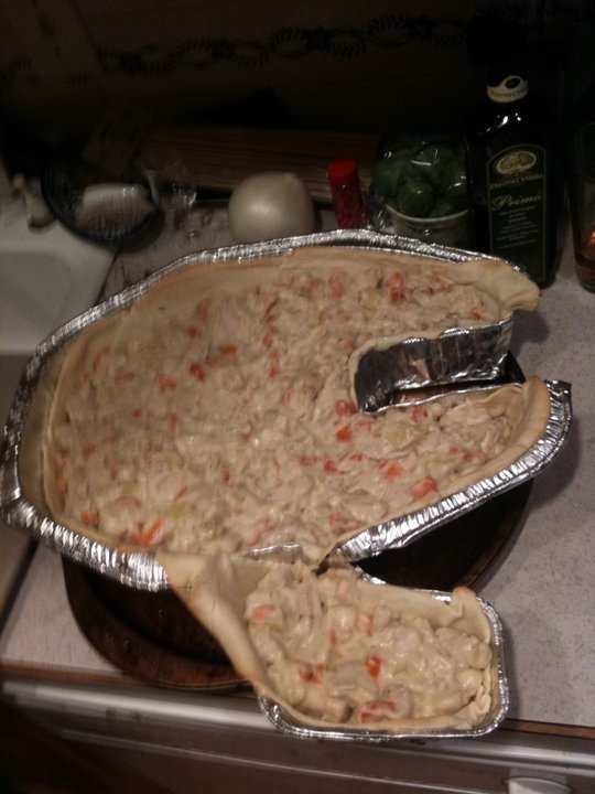 And then fill with chicken pot pie filling: