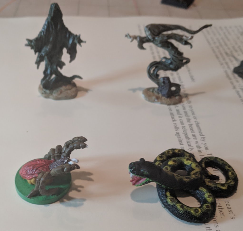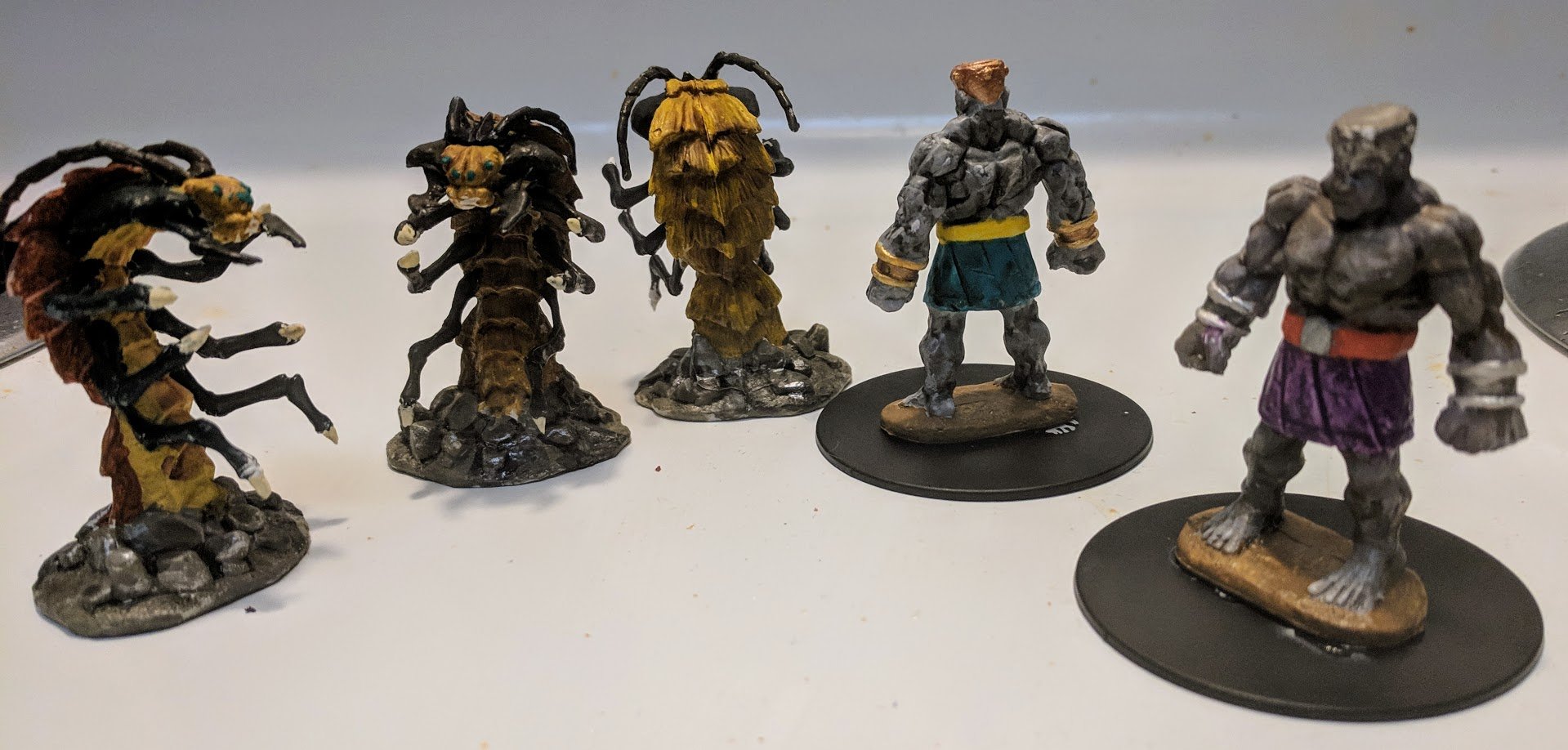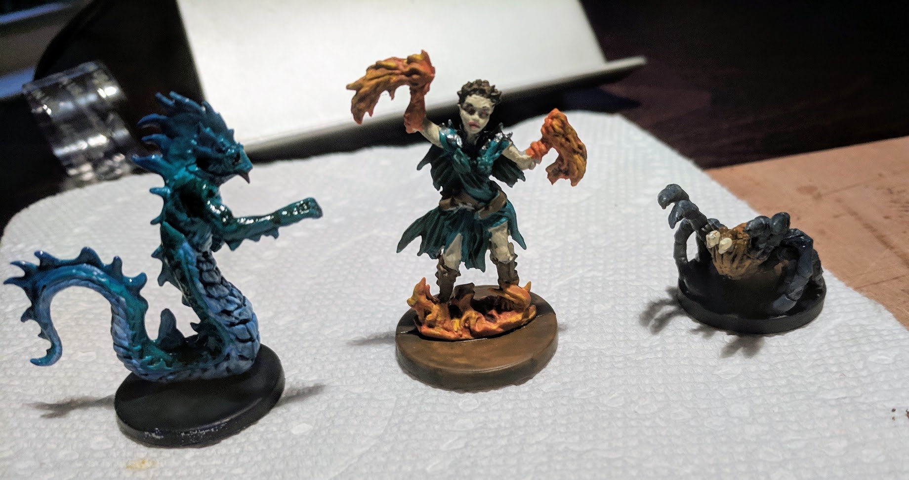 Salamander man, spider, and Gloomhaven Spellweaver: