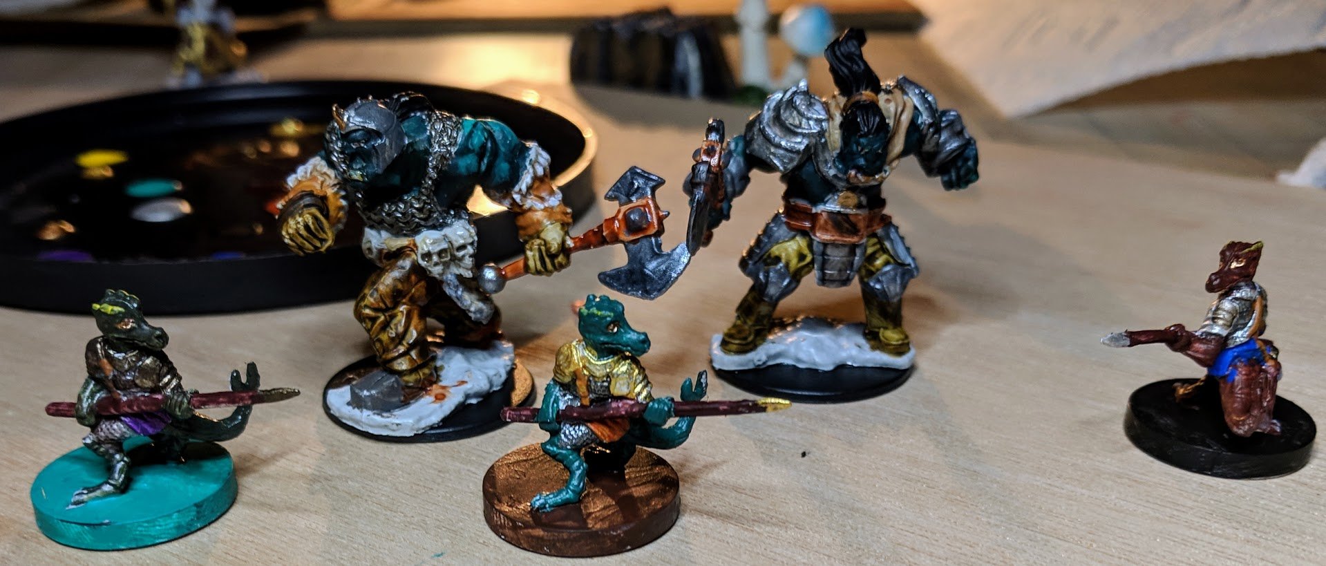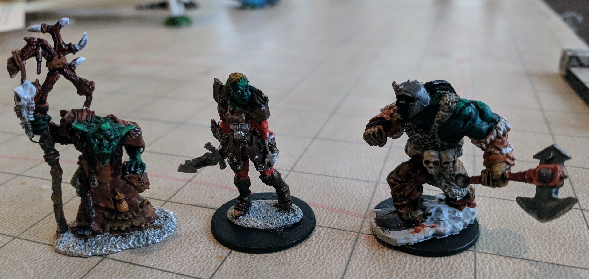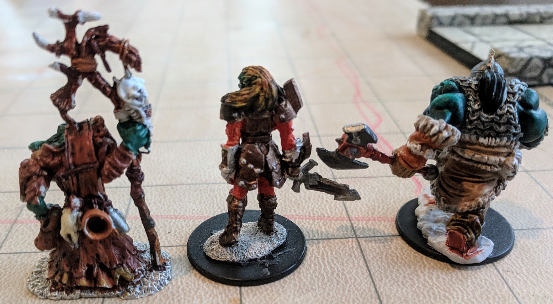 Salamander man, spider, and Gloomhaven Spellweaver: