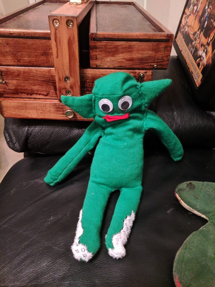 I was asked to be a guest player as a goblin whose brother had been transformed into a doll by a witch. Naturally, my first instinct was to run to Target to get St Patrick's Day clearance socks to make a prop: