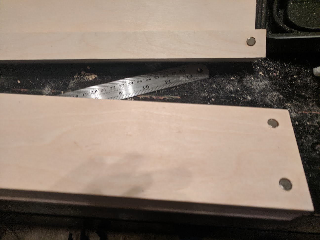 Magnet test: it holds, barely, but I decided to go to 4 magnets instead of 2 to make sure it's stable (4 1/8" and 8" from left edge):