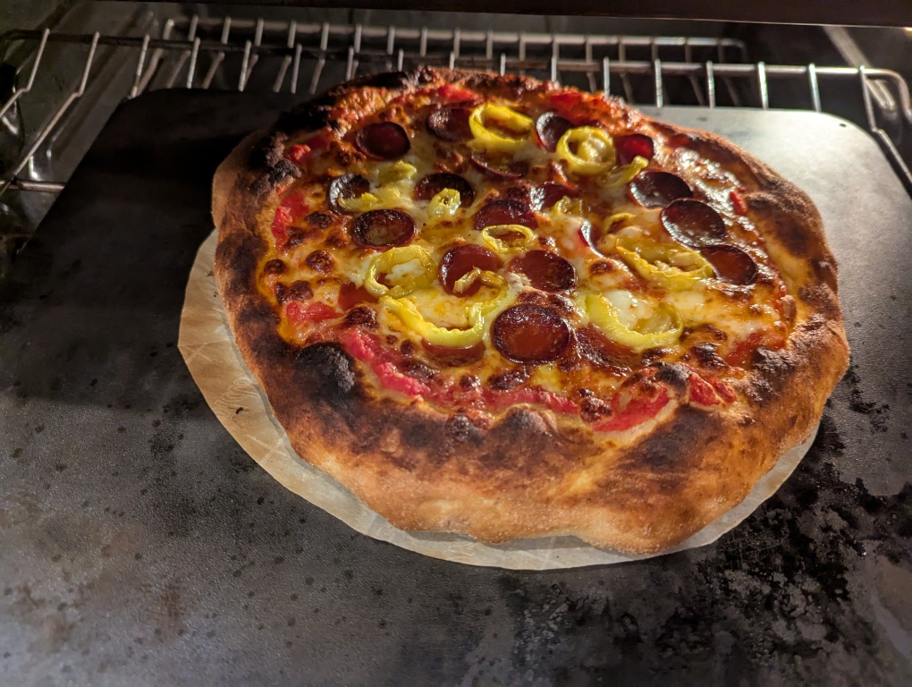 Quick crust option: Rather than placing a crust in fridge, add 1/4 c. active sourdough starter and a similar amount of flour (enough to offset the moisture in the starter). Allow to rise for 2 hours, shape, top, and bake.