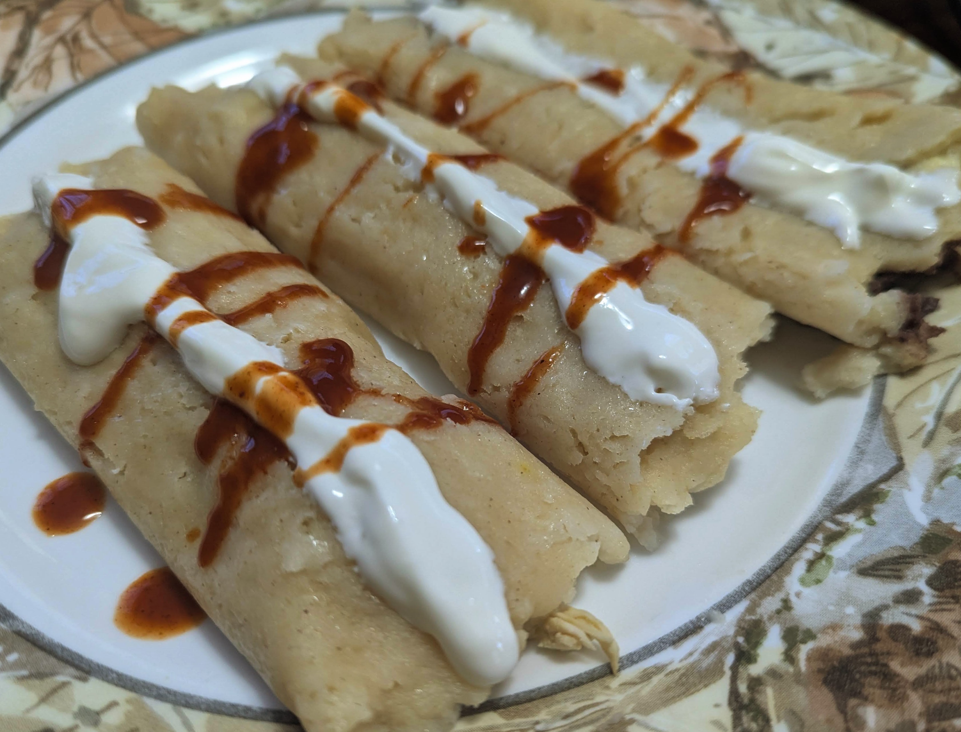 Line wrappers with dough. Fill with filling (shredded chicken mixed with salsa verde or hatch green chilis, black beans and cheese, puerco rojo, birria, etc) and close. Steam for 60–90 minutes, allow to cool for 15 minutes, remove wrappers and serve.